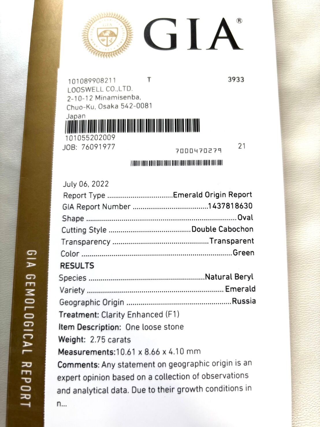 GIA鑑別書付き