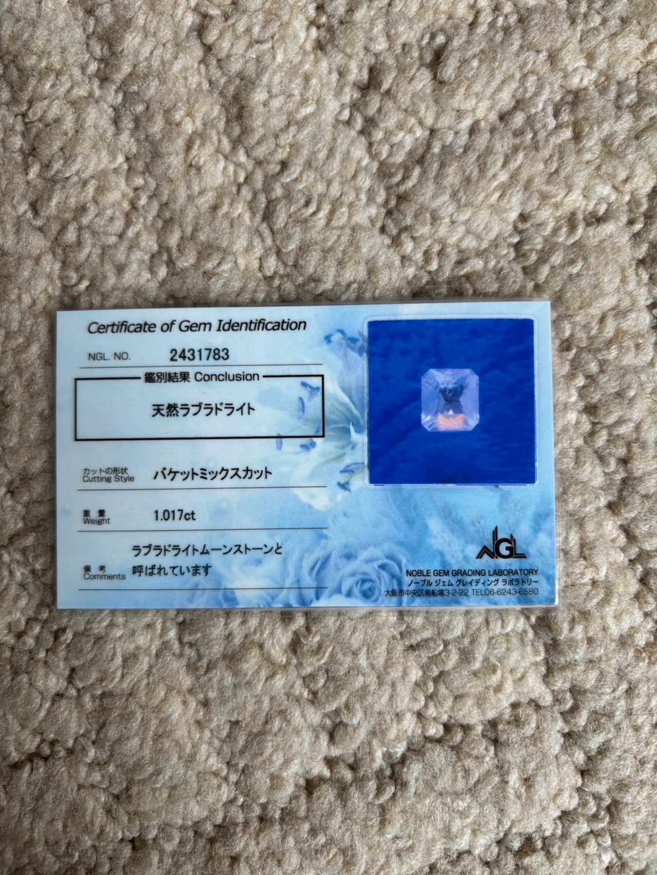 1.017ct NGL鑑別カード付