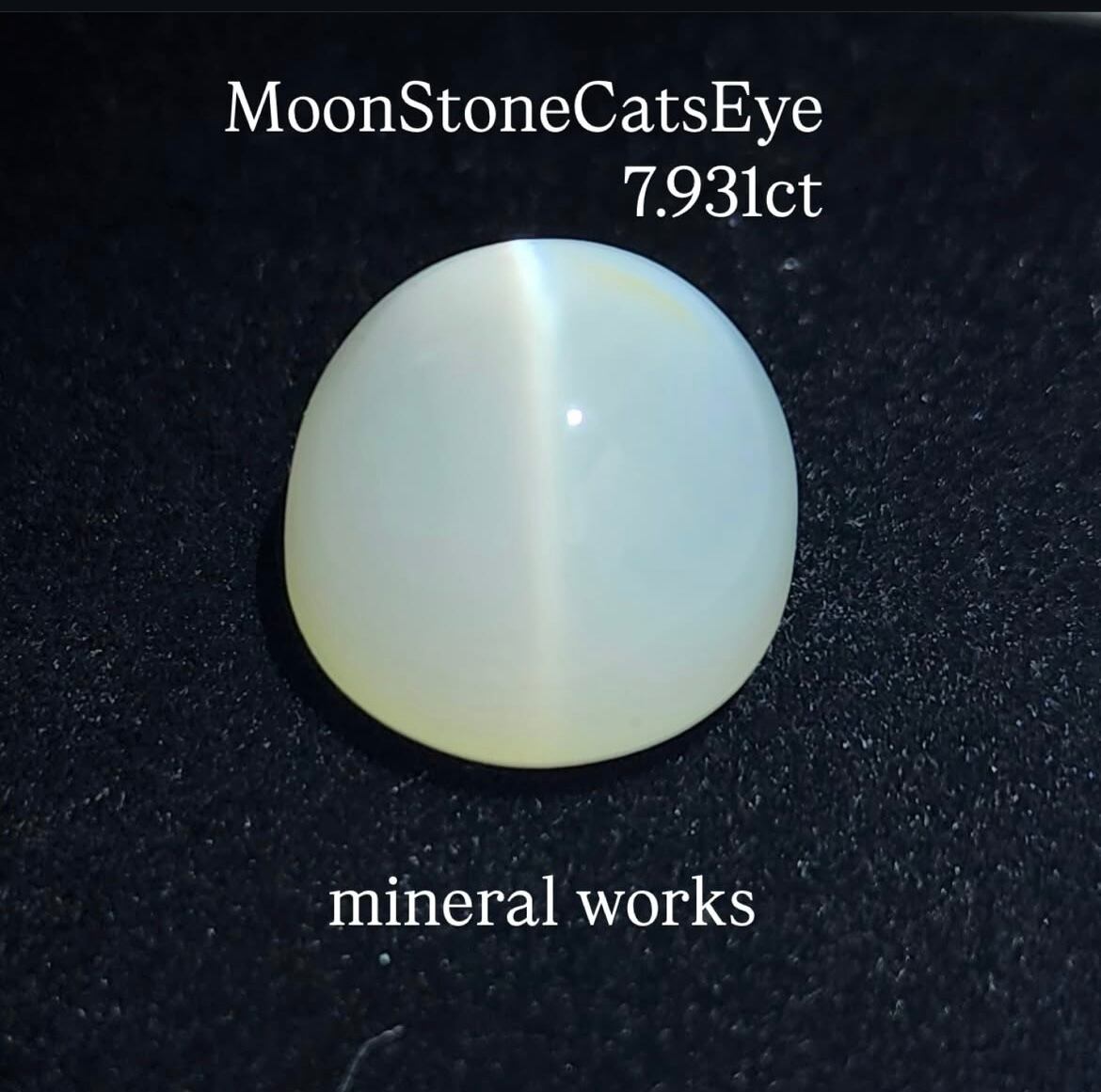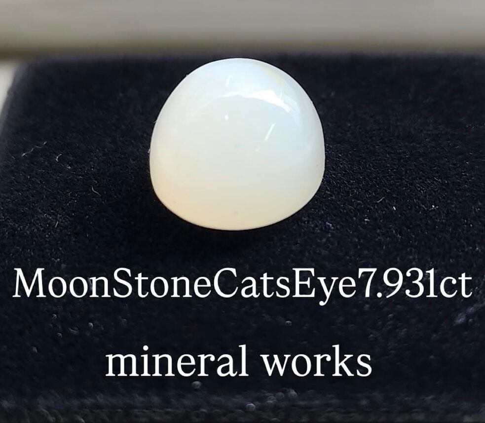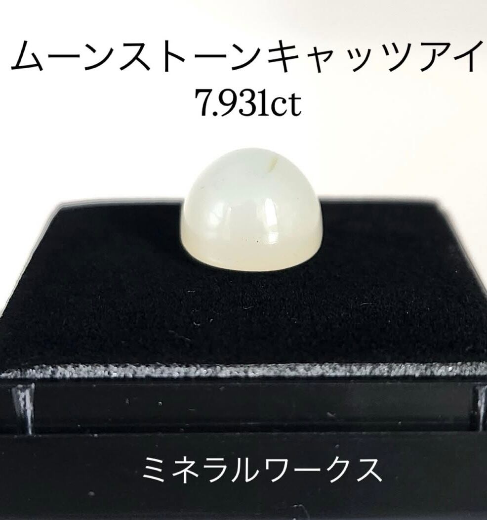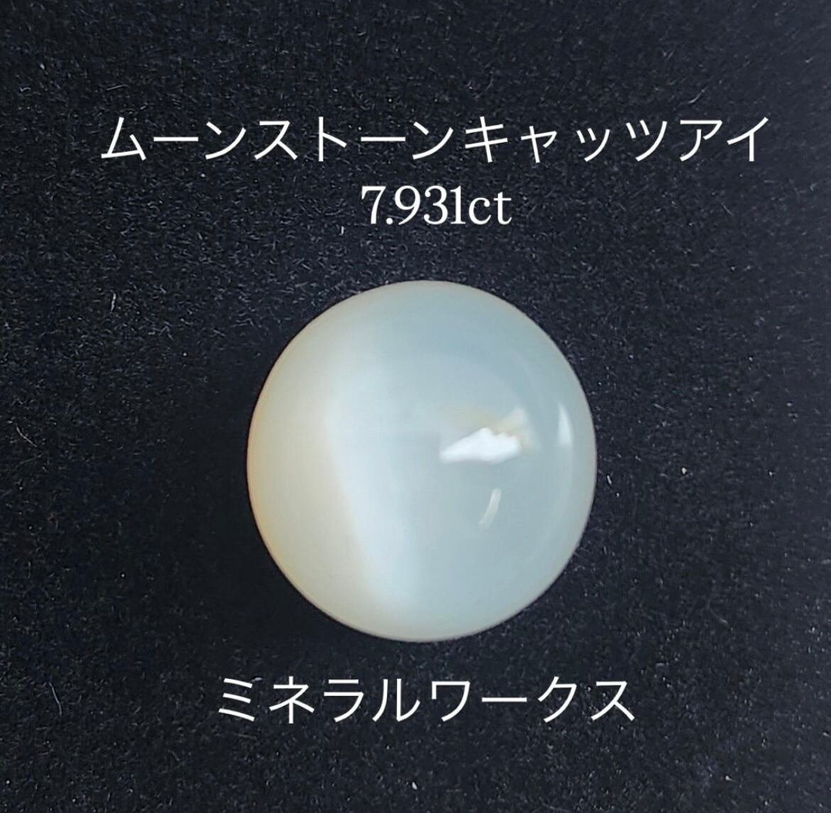 ライトをてると猫の目のような一筋の光が入るキャッツアイ効果が見られるムーンストーン