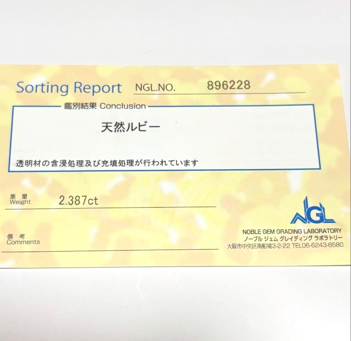 SV925 天然ルビー(含浸) ネックレス NGLソーティング付