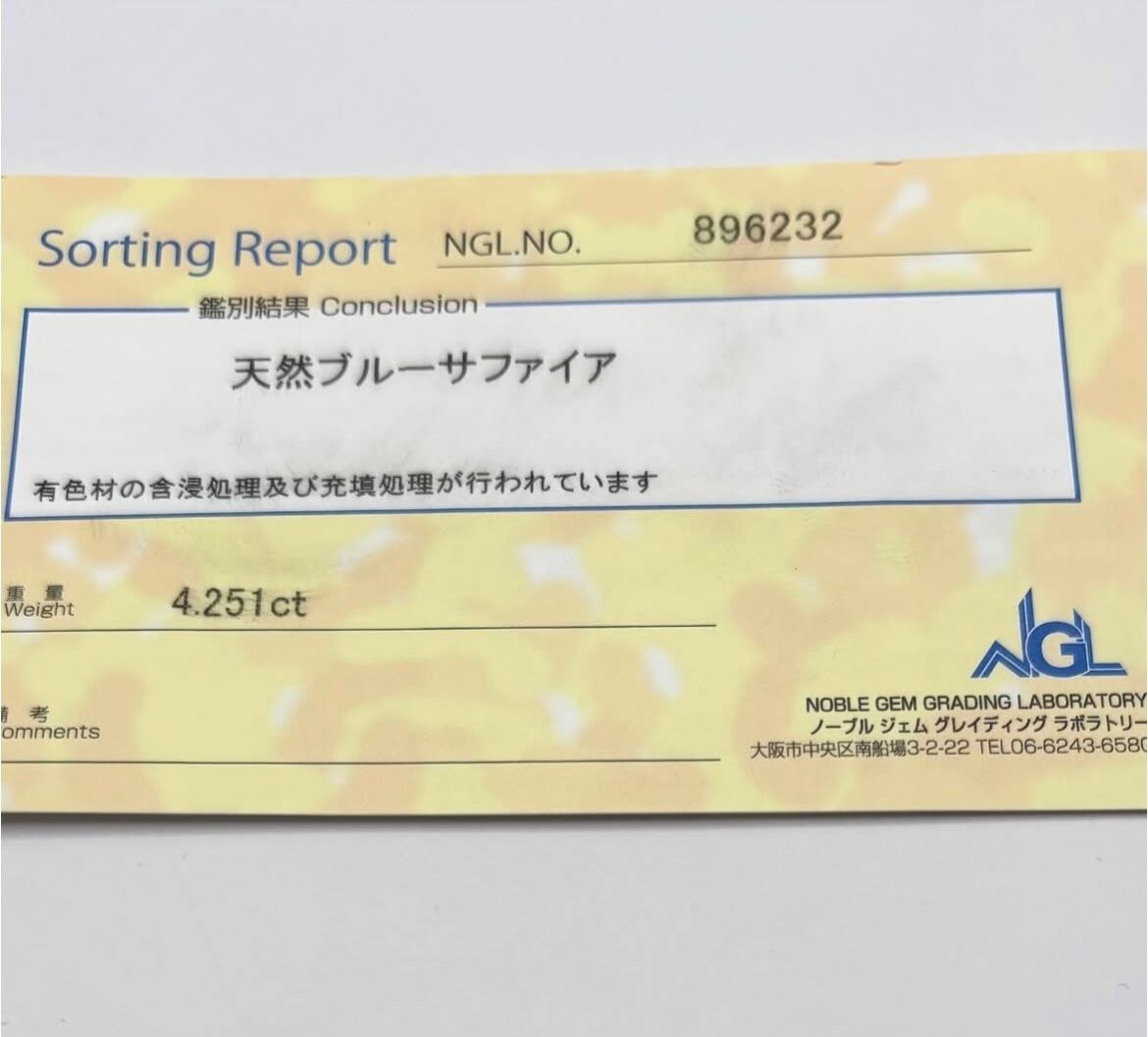 SV925 天然サファイア(含浸) ネックレス NGLソーティング付