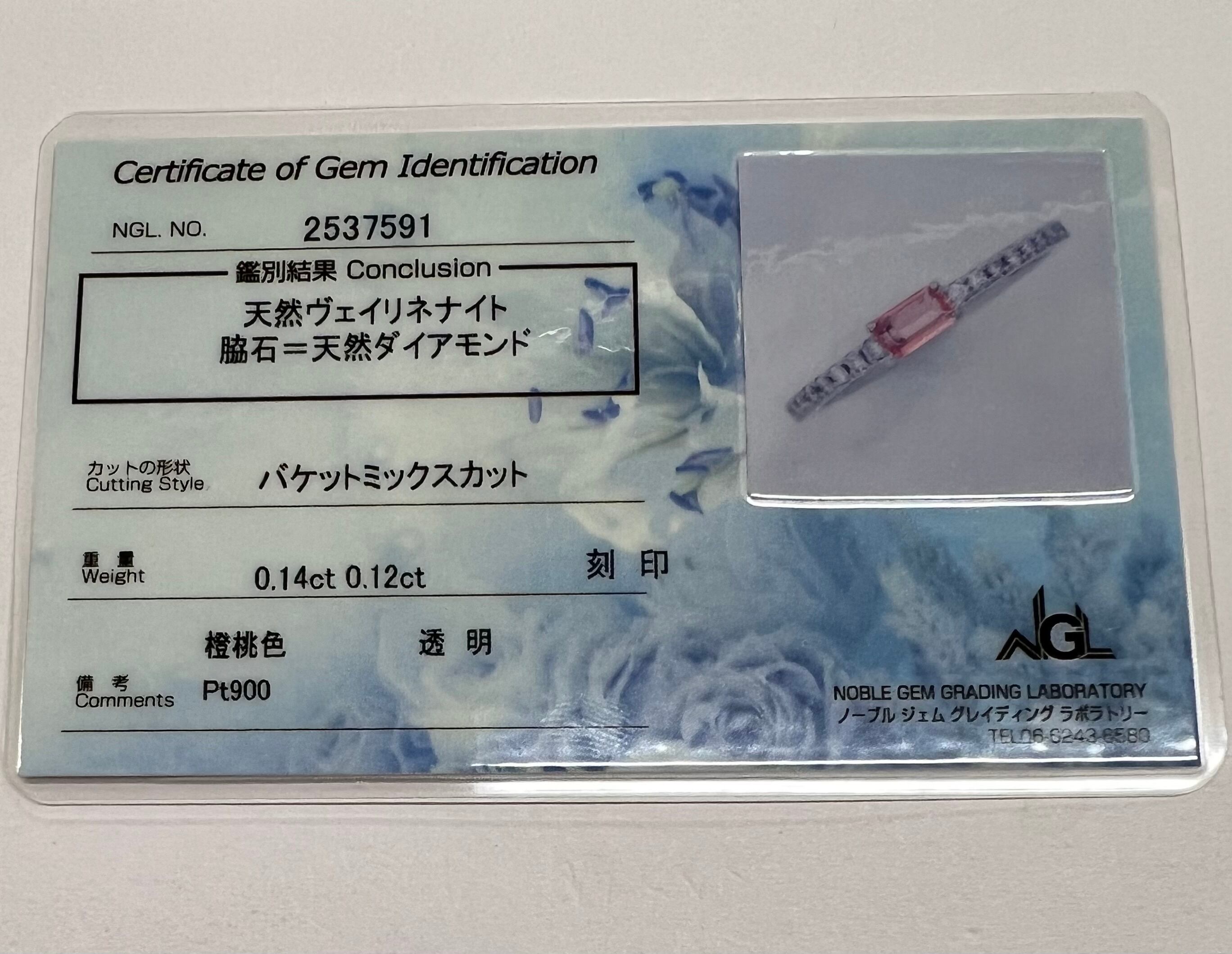 パキスタン産 ヴェイリネナイト ダイヤモンドリング鑑別付