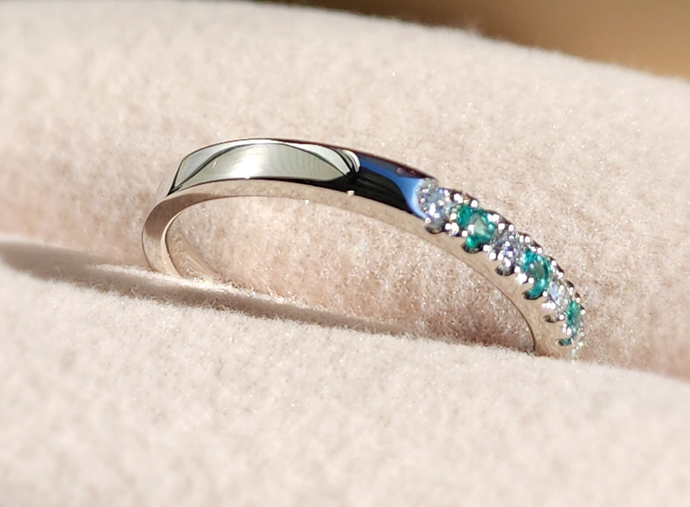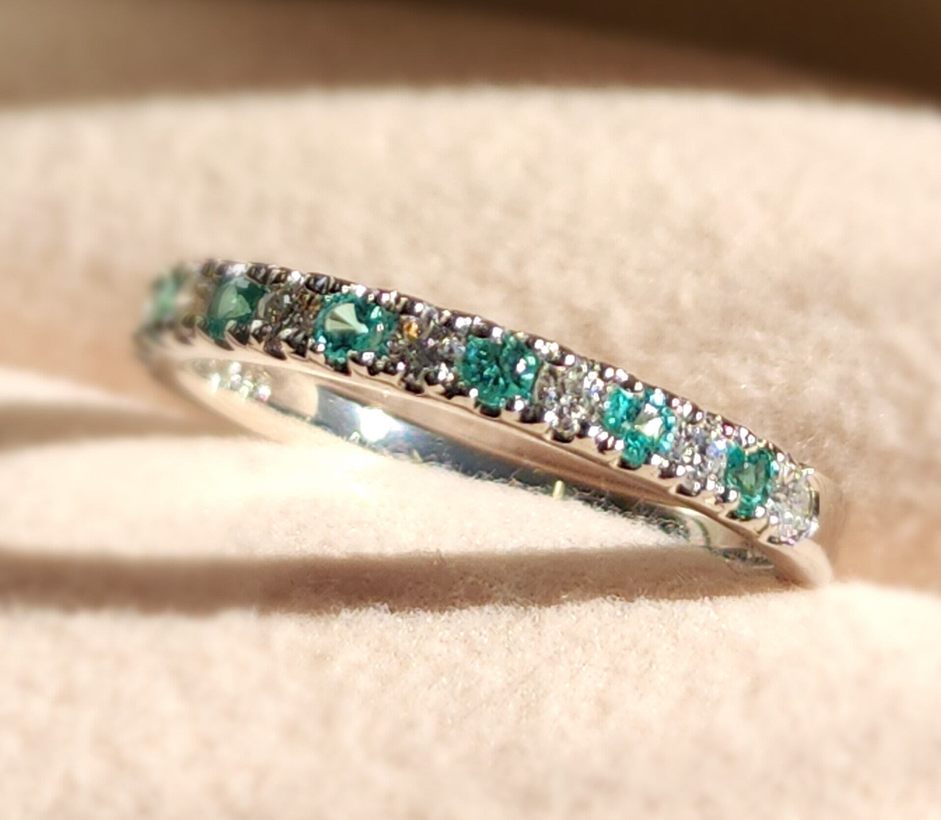 独特の輝きを放つブラジル産パライバトルマリンと、美しいダイヤモンドSIクラス以上を使用した素敵なリングです。