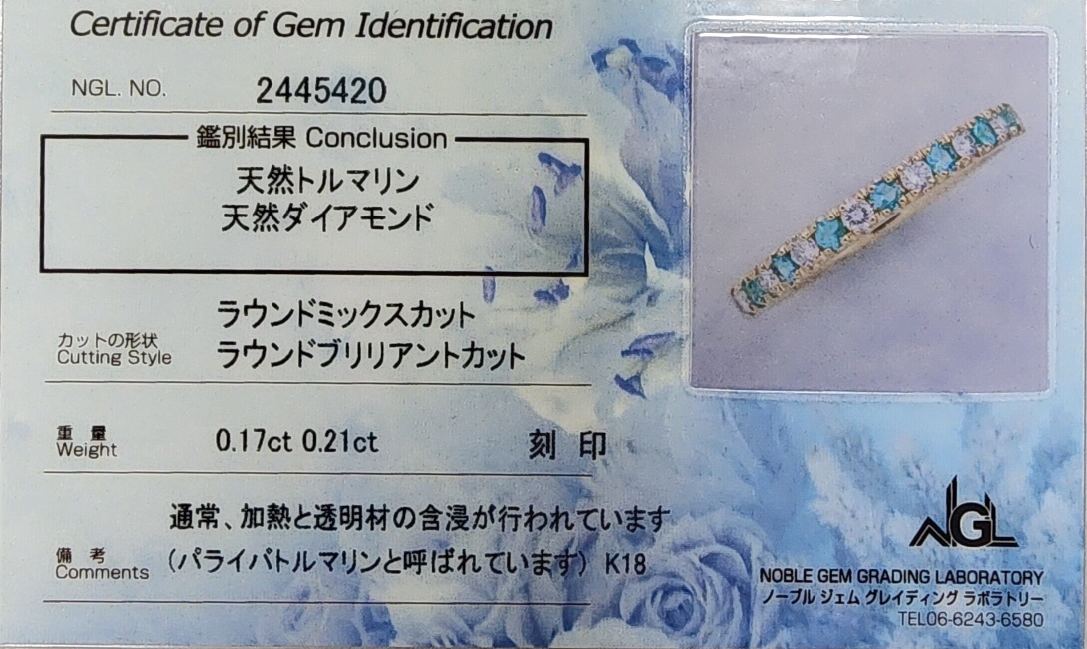 K18 ブラジル産パライバトルマリン0.17ctダイヤモンド0.21ct リング