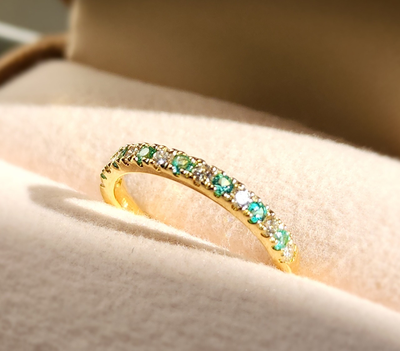 独特の輝きを放つブラジル産パライバトルマリンと、美しいダイヤモンドSIクラス以上を使用した素敵なリングです。