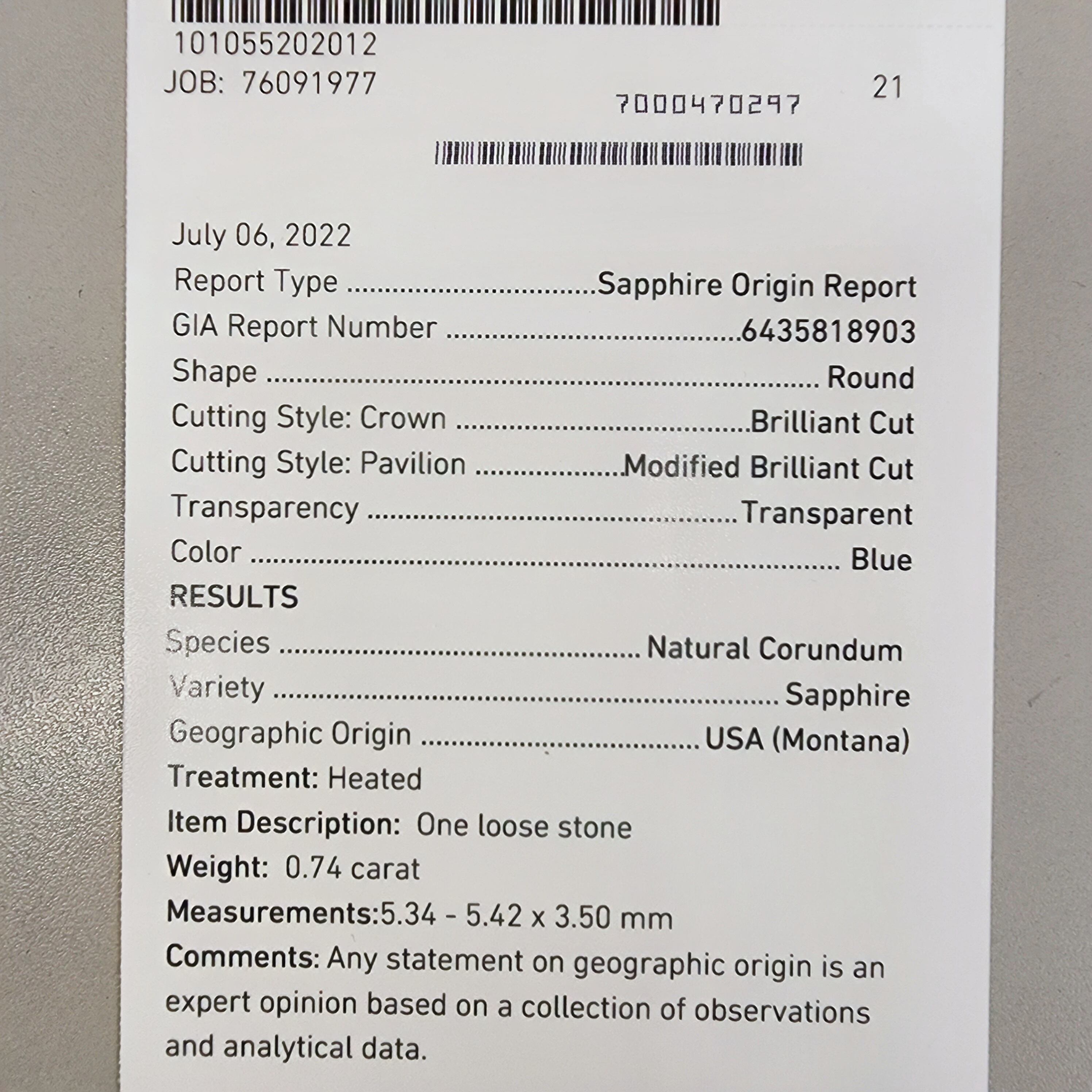 深い青色と驚くほどの透明感を持つモンタナサファイアルースです。