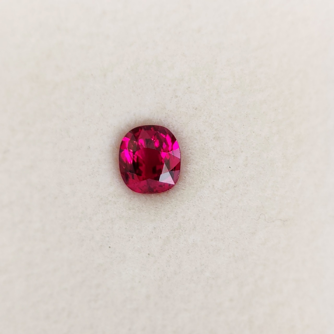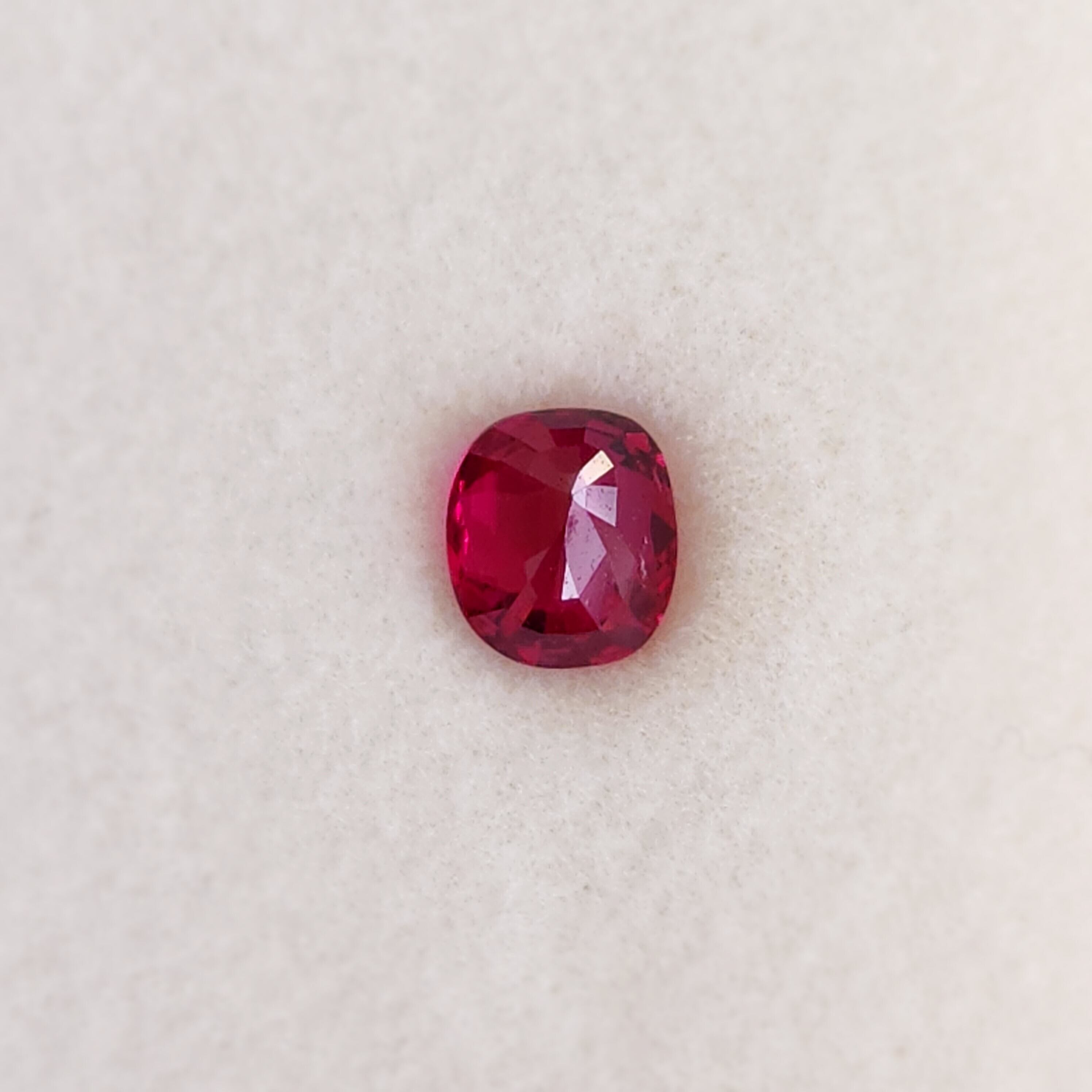 このルースは、洗練されたデザインのジュエリーに仕上げるための素晴らしい選択肢であり、その深みのある赤色が際立っています。