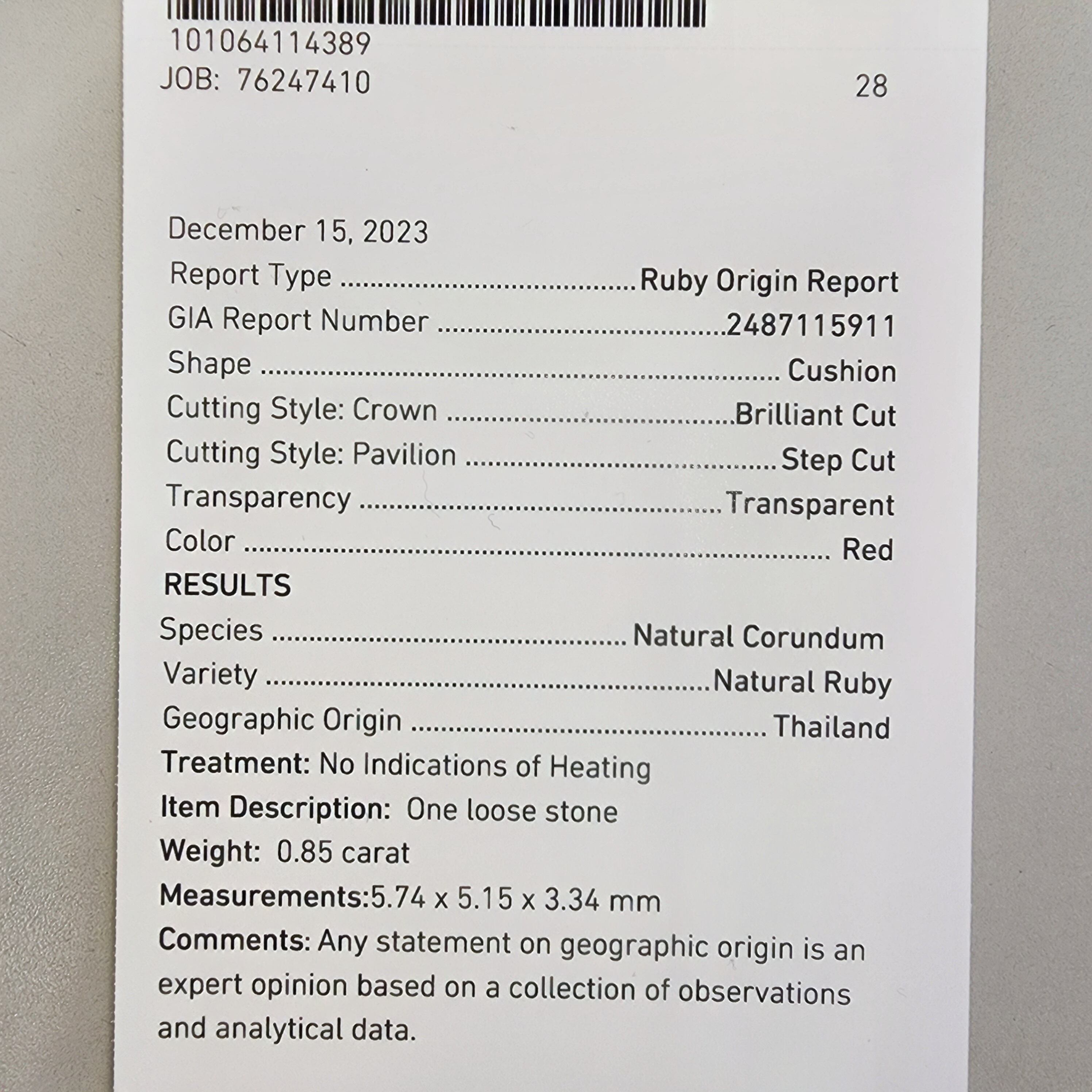 鮮やかな赤色と高い透明度を誇るタイ産非加熱ルビールースです。まるで宝石職人が手掛けたかのような自然界の美しさを楽しめる逸品です。