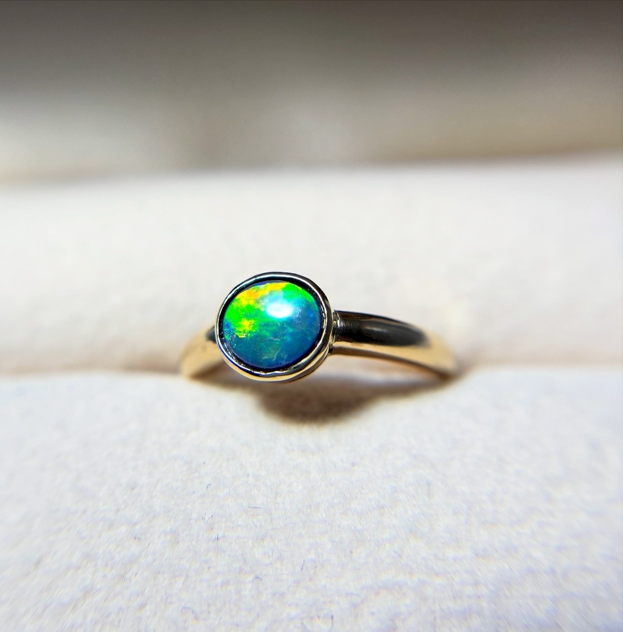 ブラックオパール K18リング 見る角度によって